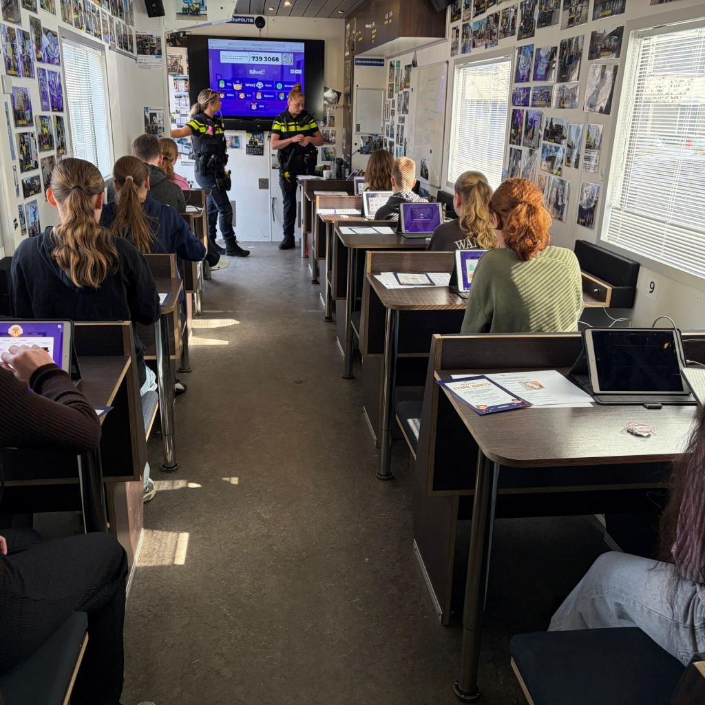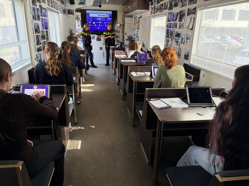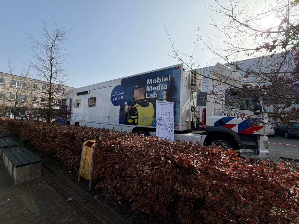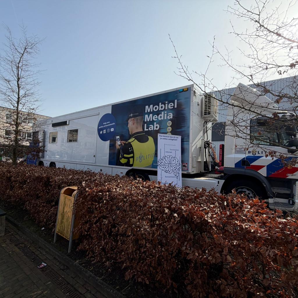 Op ons verzoek stond maandag 9 maart, het Mobiel Media Lab (MML) van de politie de gehele dag bij onze school geparkeerd.